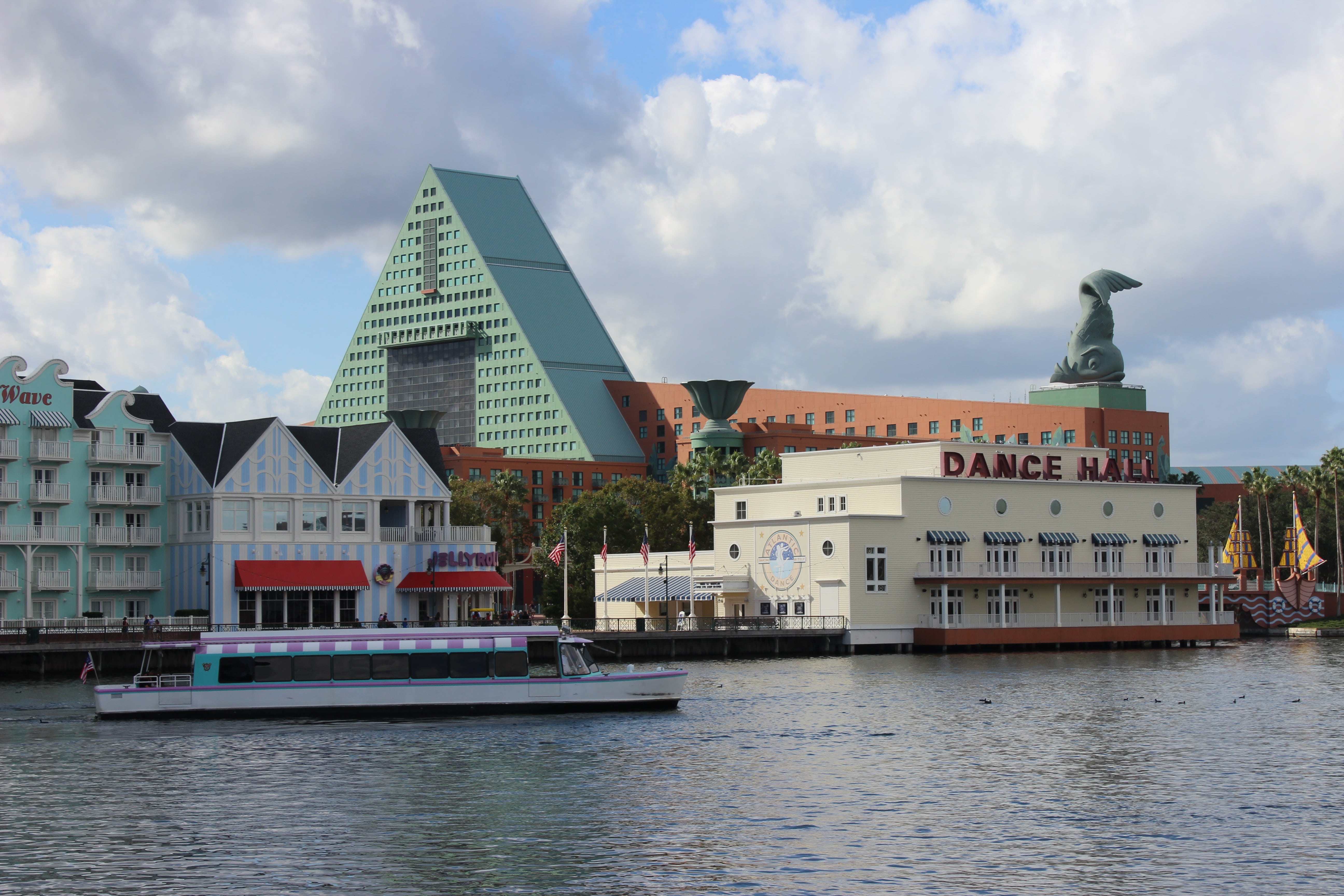 - Located between EPCOT and Disney’s Hollywood Studios so you can either take the boat or walk from the parks to this resort area