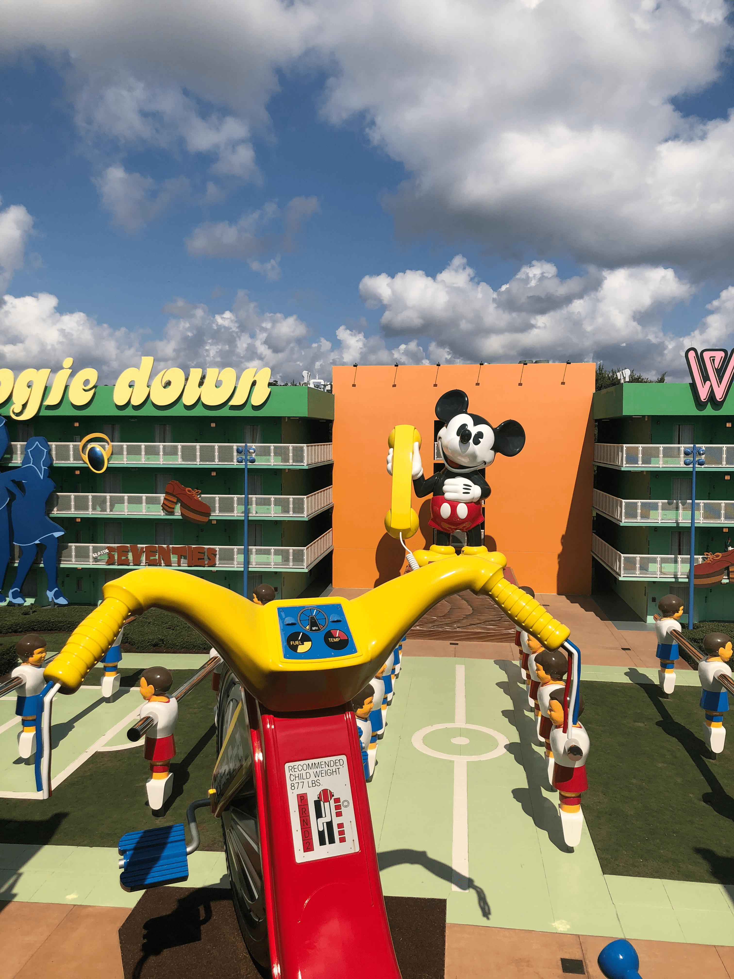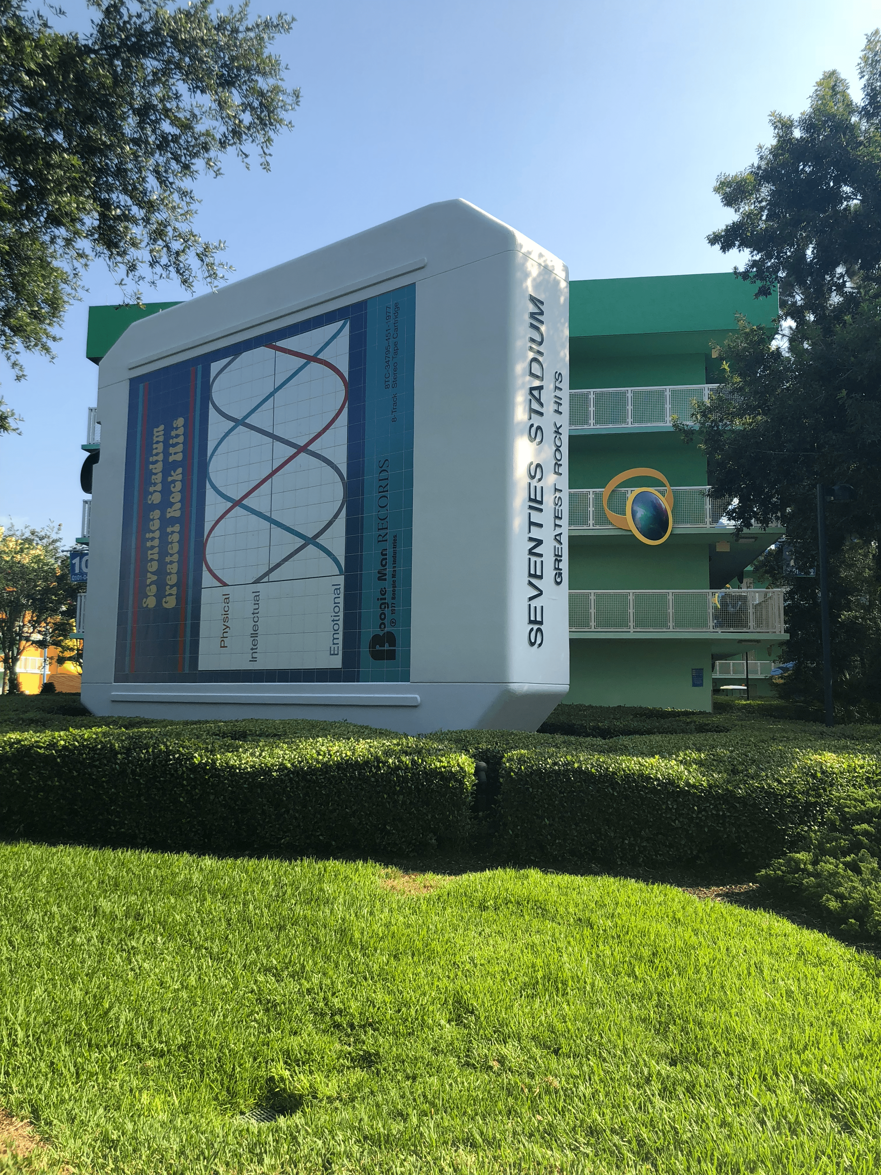 - The theme is different decades – from the 50s to the 90s – so each building at the resort has different decor to match its decade (flowers in the 60s, Walkman in the 80s, a computer in the 90s). This makes it a great option for people who don’t want an overly Disney themed hotel too