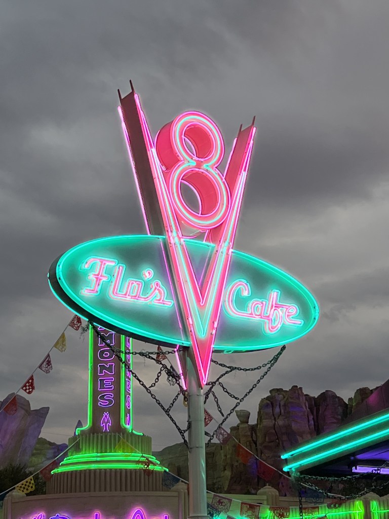 - Flo’s V8 Café: Inspired by the Disney+Pixar movie Cars, this retro-style diner serves comfort food classics like roast beef and mac ‘n’ cheese, all with a view of Radiator Springs.